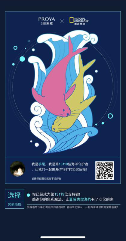 除了在远航中发现美外,尊龙和国家地理还在H5《它们什么时候可以回家》里,展示出它们所发现的、海洋的脆弱一面,意在借世界海洋日,聚集大家的声音,一起呼吁守护海洋。参与者所做的,不仅是用色彩重现海洋之美,也是一种态度号召,能唤醒身边更多人的环保意识,并发动他们从改变某些日常习惯做起,比如减塑,让小举动也成为一份力量。